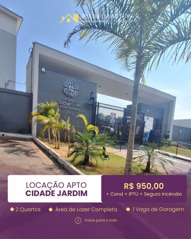 ✨APARTAMENTO DISPONÍVEL PARA ALUGAR ✨ Condomínio Portal Recanto das Hortênsias, localizado no bairro Cidade Jardim! ✨ 📌 2 Quartos 📌 Sala de jantar integrada 📌 Cozinha 📌 Banheiro 📌 Lavanderia 📌 1 vaga coberta garagem Além disso, você terá acesso a uma área de lazer completa, com piscina para relaxar, salão de festas para momentos memoráveis e uma churrasqueira para confraternizações com amigos e familiares. Entre em contato comigo agora mesmo e agende uma visita