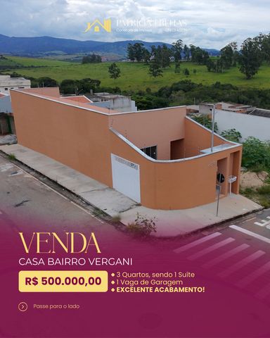 Casa à venda no bairro Vergani em Pouso Alegre – 3 dormitórios, 100 m² e excelente acabamento Excelente oportunidade para quem procura casa à venda em Pouso Alegre. Localizada no bairro Vergani, esta casa oferece praticidade, acabamento moderno e estrutura preparada para mais conforto no dia a dia. O imóvel possui 100 m² de área construída e conta com 3 dormitórios, ambientes bem distribuídos e ótimo padrão de acabamento, com toda a casa em porcelanato, trazendo mais sofisticação, durabilidade e facilidade na manutenção. Outro grande diferencial é que o imóvel já possui encanamento pronto para aquecedor e tubulação preparada para instalação de ar-condicionado, agregando mais comodidade e valorização ao imóvel. A casa é ideal para quem deseja morar com conforto ou investir em uma região em crescimento de Pouso Alegre/MG. Características do imóvel: 3 dormitórios 100 m² de área construída Casa toda em porcelanato Encanamento pronto para aquecedor Tubulação pronta para instalação de ar-condicionado Garagem Quintal Valor: R$ 500.000 Condição: aceita troca mediante avaliação Entre em contato com a Imobiliária Patrícia Freitas para mais informações e agende uma visita.